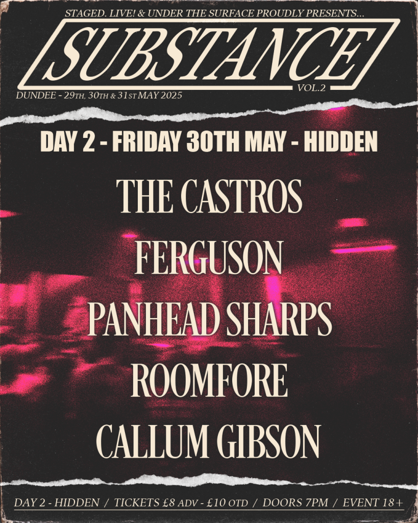 For me it just felt like such a real special moment of the Dundee scene coming together and supporting one another and that’s something that I don’t think I’ve felt with our local music scene for awhile before that. It’s a feeling that I’m really trying to recapture and maintain around Dundee through events like Substance to really help us rebuild that sense of community in our local scene since, it’s something a place like Glasgow does really well within their DIY music scene and I feel that Dundee has just really been missing out on that recently,