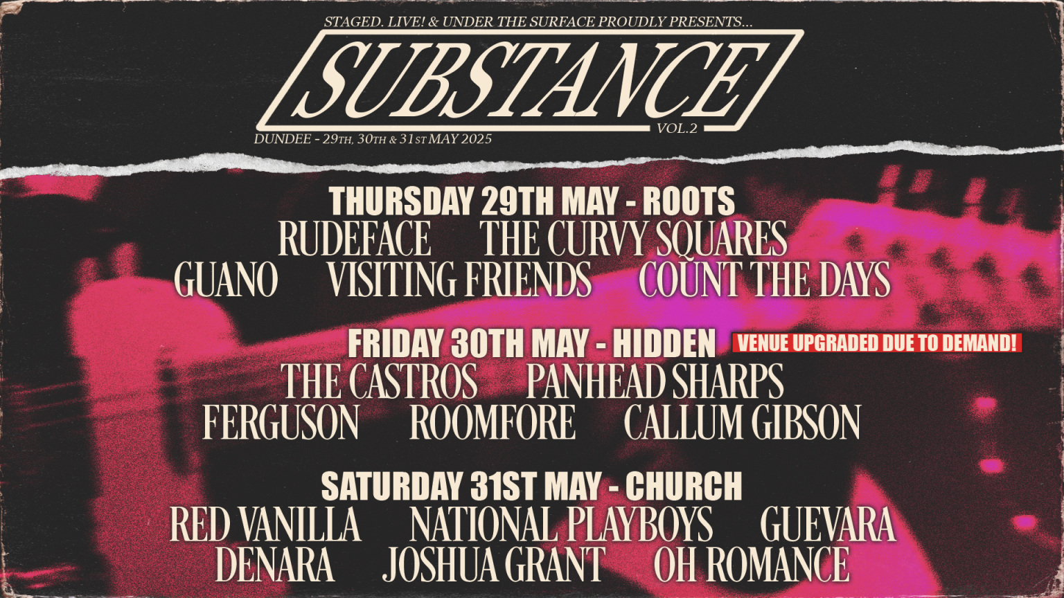 Last but never least..The Castros! Incredible energy, flawless melodies, catchy tunes and electric vocals, what can’t these Fife lads do? A favourite of mine from all three shows, these guys know how to close a night. The band, just like Panhead Sharps have a big following, meaning the energy in the crowd was incredible, being packed out as everyone sang along. Overall they are extremely coherent with excellent compositions and catchy melodies. I feel I have to give an honourable mention to the singer who was the ultimate hype man, consistently getting the crowd dancing along with him, especially during my favourite song, Evacuate…what a tune.